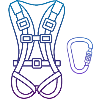 Équipement central du système, il répartit les efforts en cas de chute et maintient l’utilisateur en sécurité. Le harnais doit être adapté à la morphologie et correctement ajusté.
